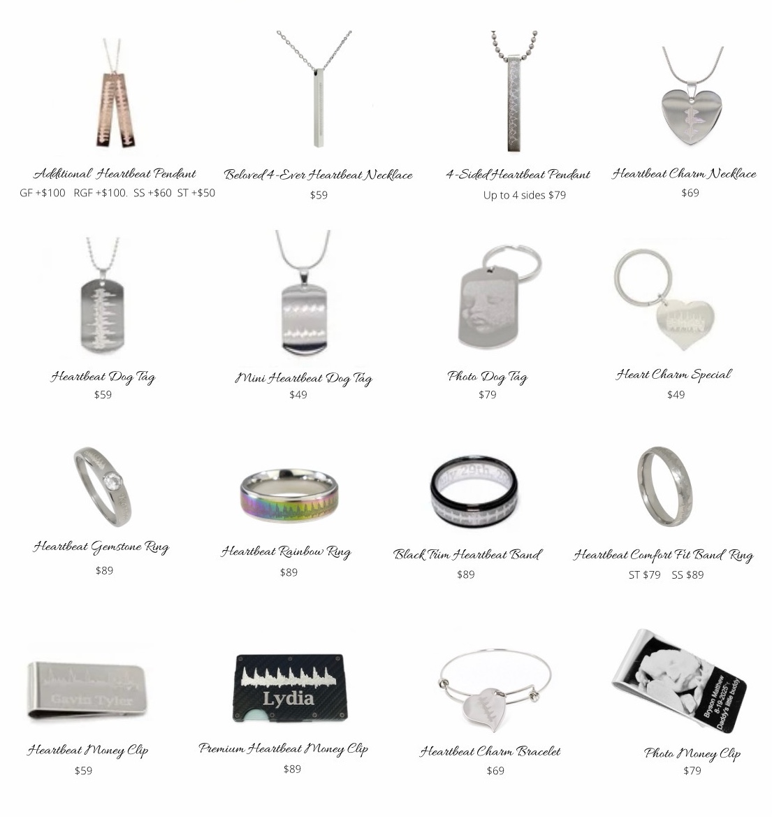 We now offer customized heartbeat jewelry for anyone! Is there anyone whose heartbeat you would like to have with you, forever? We can capture the heartbeats of babies, children, and adults, and have them created into beautiful heartbeat keepsake jewelry. Take a look at the many options we have to choose from. Give the gift of a heartbeat forever! Our pricing includes your appointment and heartbeat capture. The heartbeat capture is performed through a brief ultrasound to be performed at Baby Inside Me 3D Ultrasound. Even better…. If you have previously visited our studio during your pregnancy, we still have your baby’s heartbeat recorded. Just call to order!